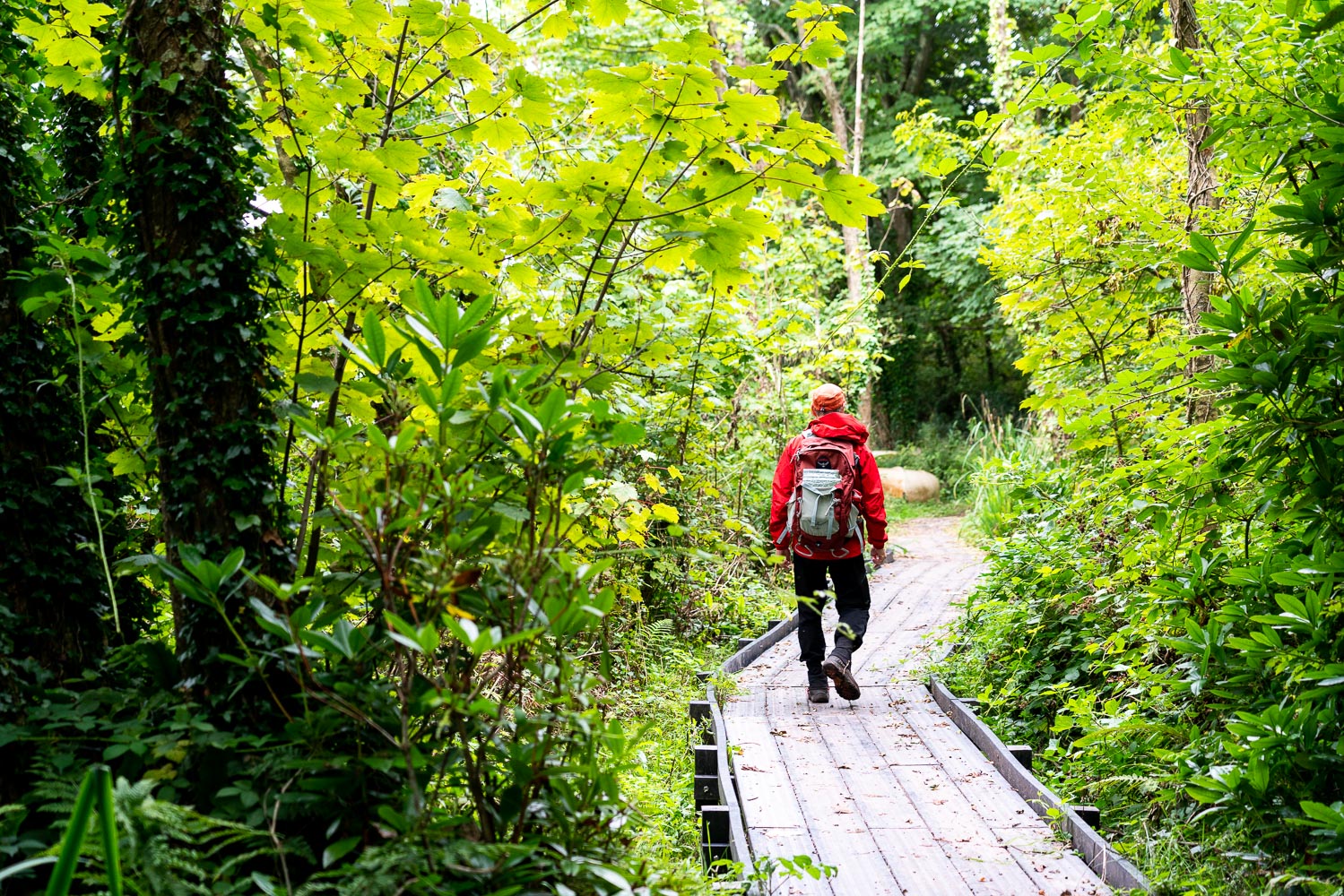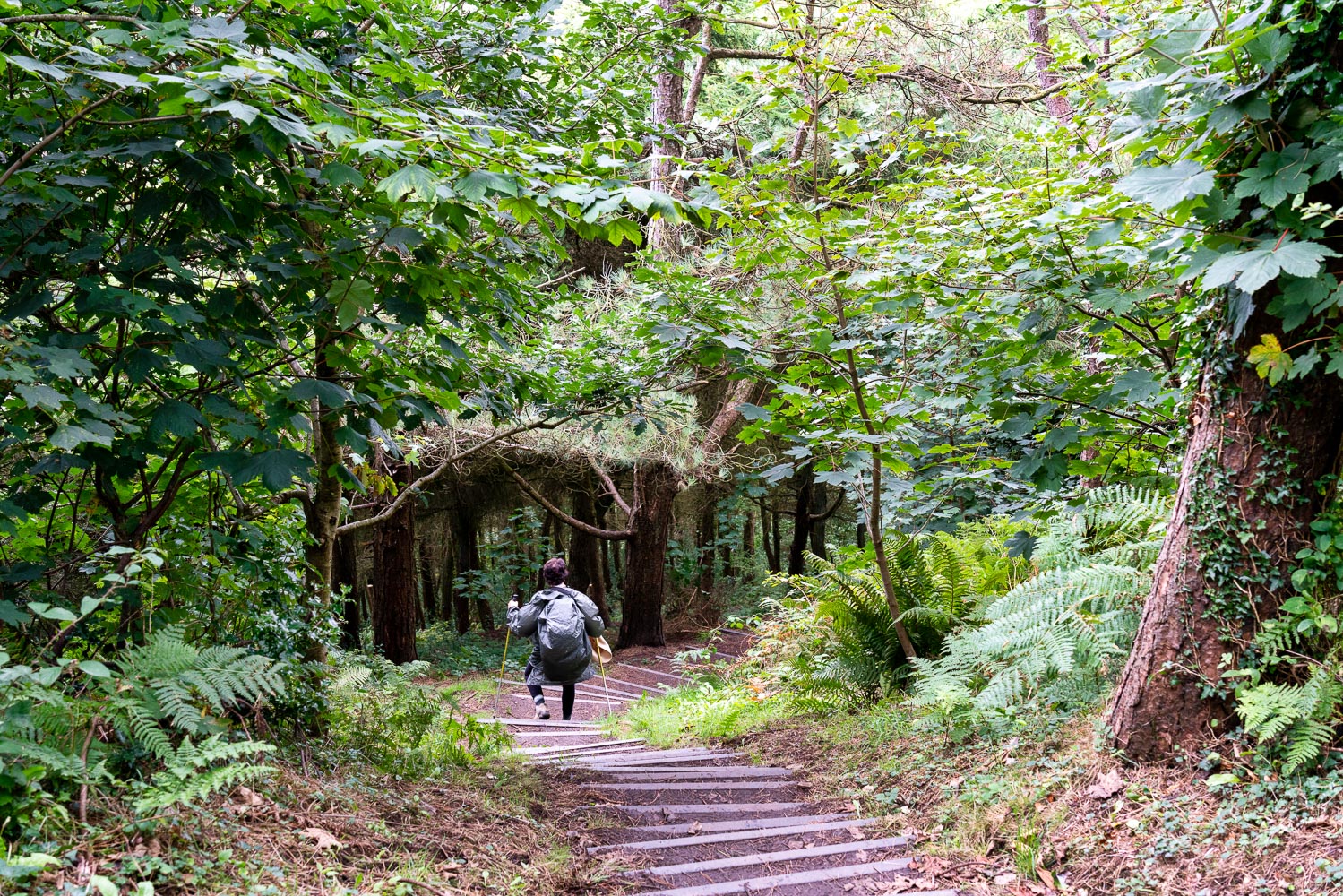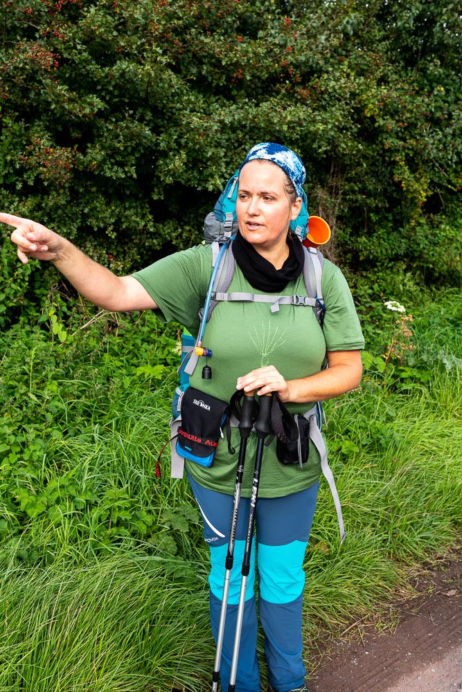 A German hiker carrying all her gear, but staying in B&Bs